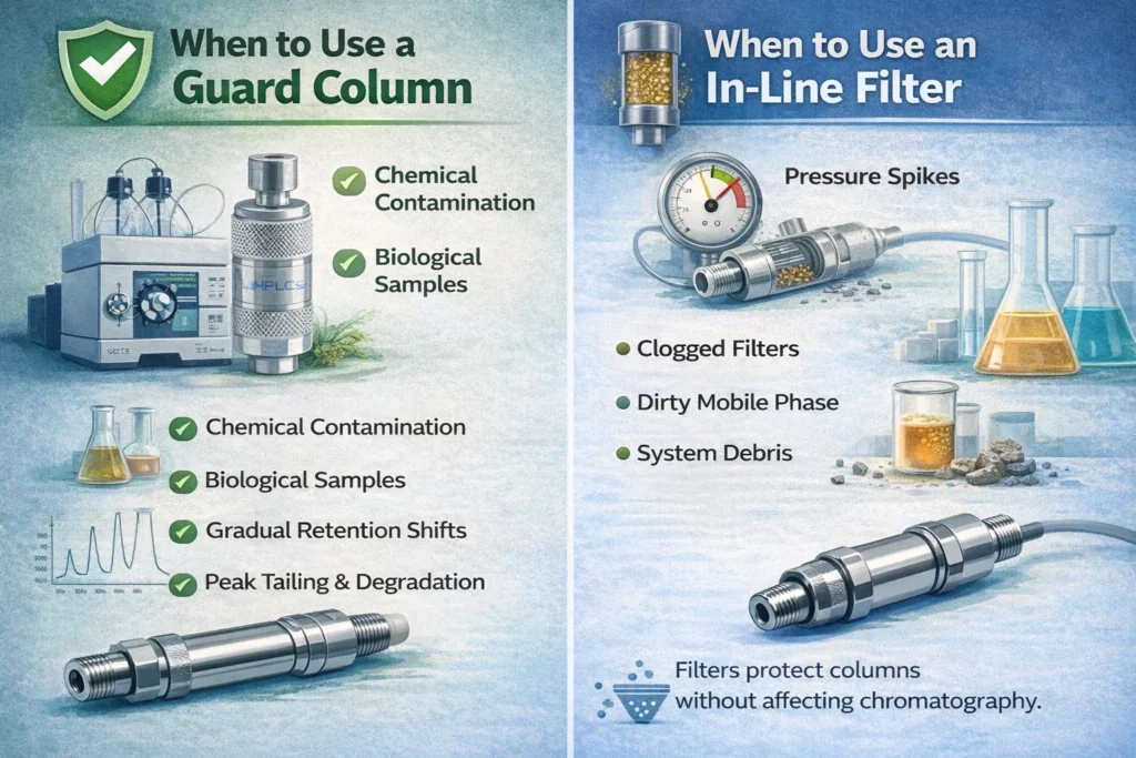 They’re both designed to protect your HPLC system and analytical column, but they work in very different ways. Choosing the wrong one — or assuming they’re interchangeable — can quietly cost you time, money, and data quality.